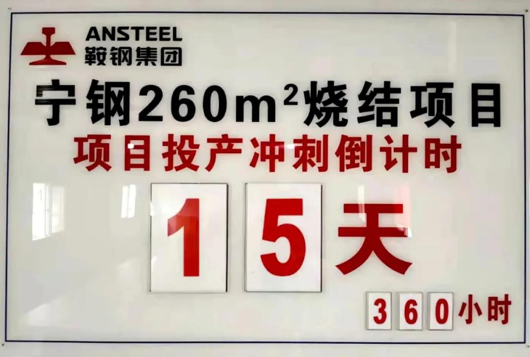 寧鋼260燒結EPC工程是鞍鋼集團工程技術有限公司(以下簡稱公司)外部市場較大的單體工藝總承包工程。2021年6月份,工程進入調試階段,標志著項目整體進入了打贏寧鋼260燒結工程攻堅戰的關鍵時期。從5月下旬起,項目部全體成員就一直堅守一線,為6月30日的投產目標全力沖刺。項目指揮部的墻上掛著醒目的倒計時牌時刻提醒項目部成員,項目節點就是“軍令狀”,時間刻不容緩。